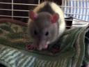 I kindly explain that both of the rats are males, and the fat one (Cadillac) steals skinny one’s food. Skinny one may be little, but he’s scrappy. He obviously defended his precious pasta.