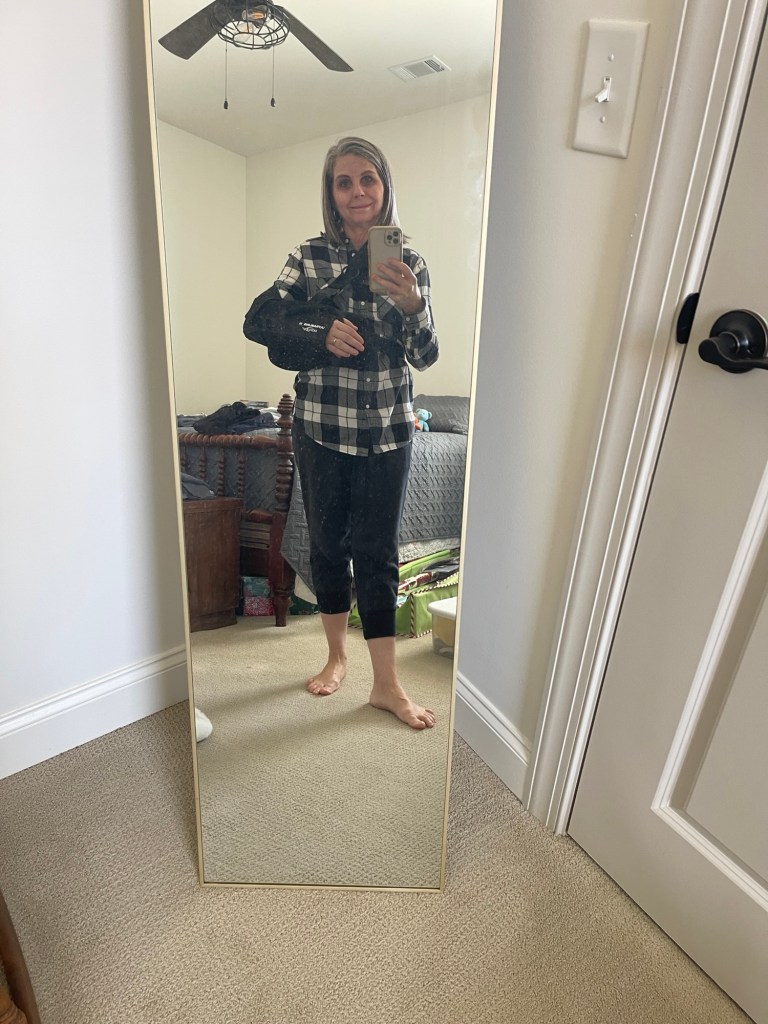 The doctor called the Mr. while I was in recovery and told him that my rotator cuff was hanging on by a thread. I had so much damage in my shoulder! He said he’d fixed everything you can fix in a shoulder. Go big or go home is my motto, y’all.