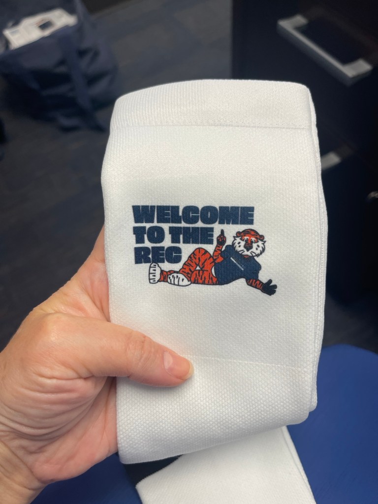 I thought I had placed it out of sight, but nope. She had Eagle (get it . . . eagle as in War Eagle) eyes. She said, “That color is so bright!”