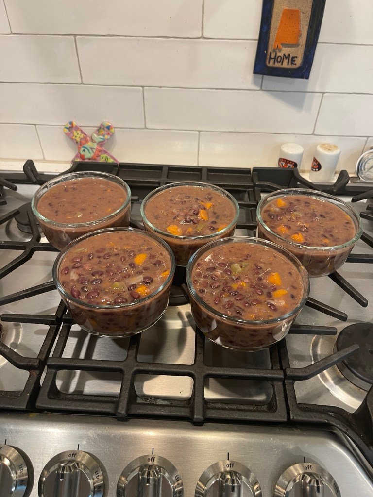 Yesterday, when I got home from work, I prepped a pot of Chipotle Black Bean Soup for post-surgery days. I even portioned it out to make things easier for the hubby, who will have to do everything for me for a short little while.