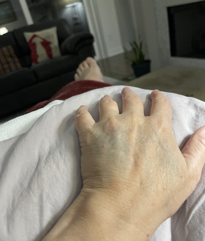 One thing I’m having to watch out for right now is my arm dangling from my sling. Because my arm is still numb from the nerve block, I cannot feel when it slips out of the sling. So every time I have to get up, I have to check to make sure my arm is not hanging down, which is a very bad thing with the repairs I had done.