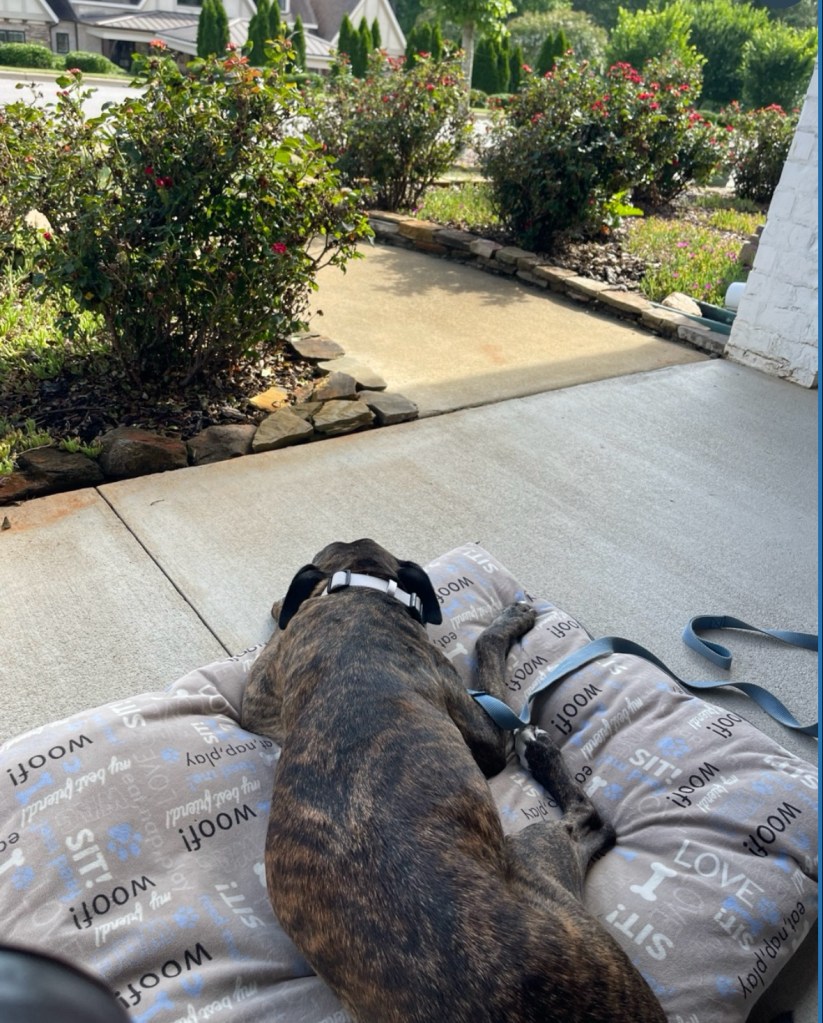 This is Gambit’s favorite place, other than beside me on my recliner.