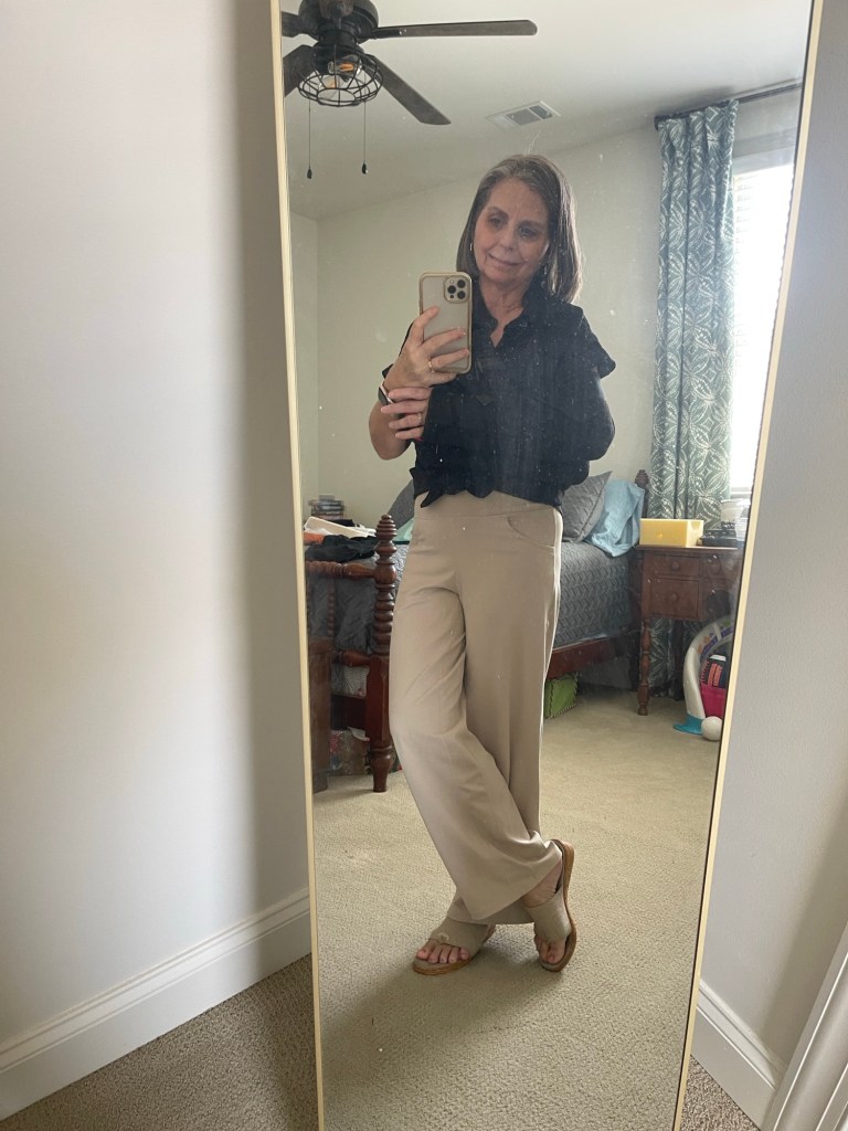 The blue looks super professional too, which is great for work. We have a mini retreat today, so the pants arrived just in time!