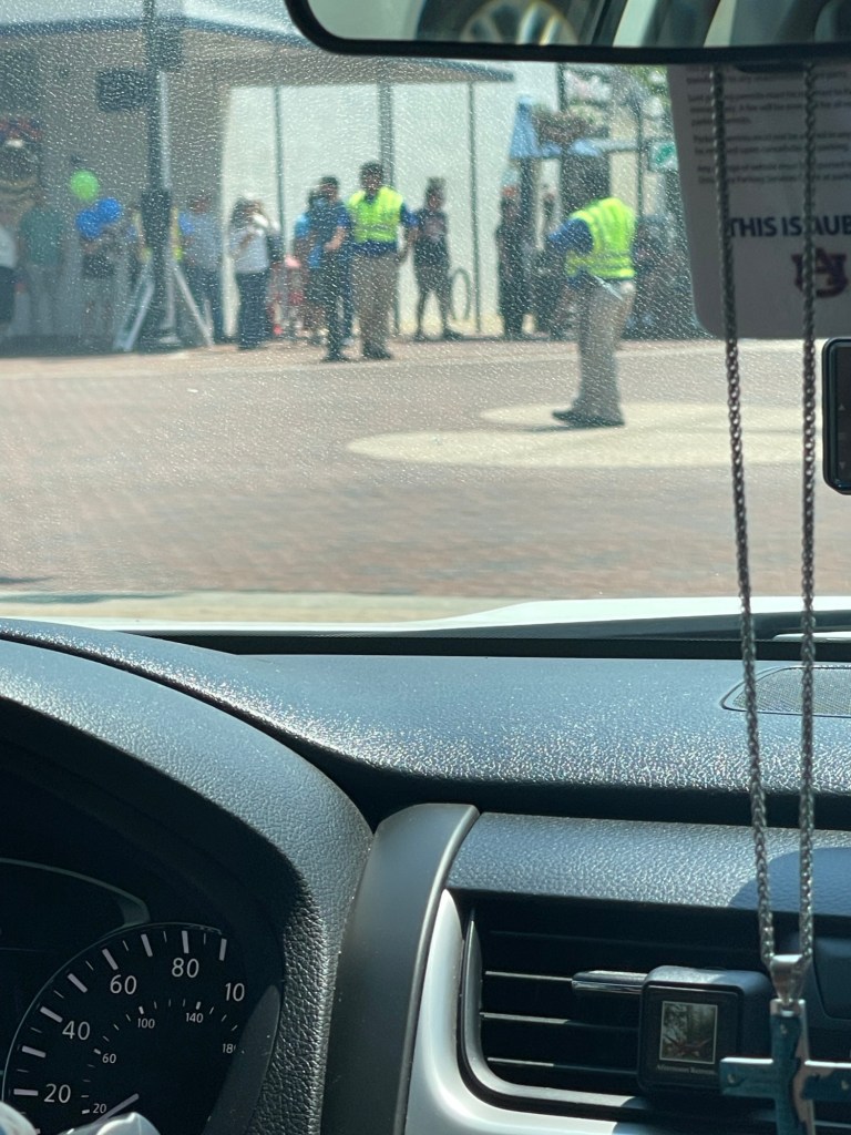 Monday, I worked Tiger Tables, which is part of Camp War Eagle, Auburn’s orientation for incoming freshmen. I rode with a couple of other people from my building, and on the way back, we drove through Toomer’s Corner.