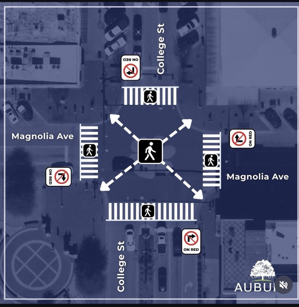 The kicker is that people can move diagonally rather than crossing the street twice. That’s always been a pain – waiting each time to cross twice.
