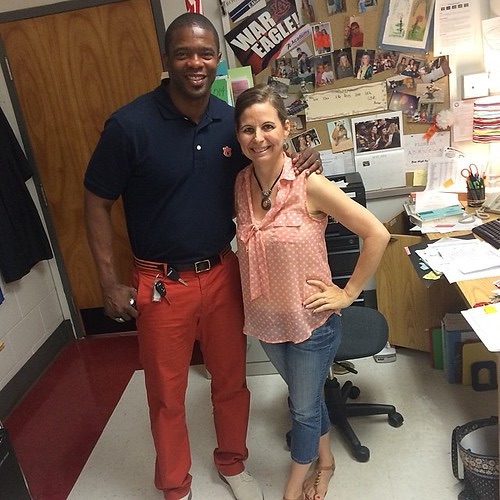 He went to the high school I taught at and was recruiting one of my students. When my student showed up to class late (I was a stickler for being on time), he told me that an Auburn coach had kept him past the bell. I asked him to get the coach, and he did! I stupidly said, “Can I hug you?” when Dameyung walked into my room.