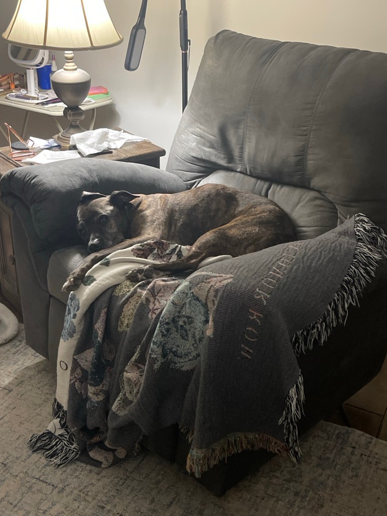 Gambit sat with me, as he’s wont to do whenever I’m home.