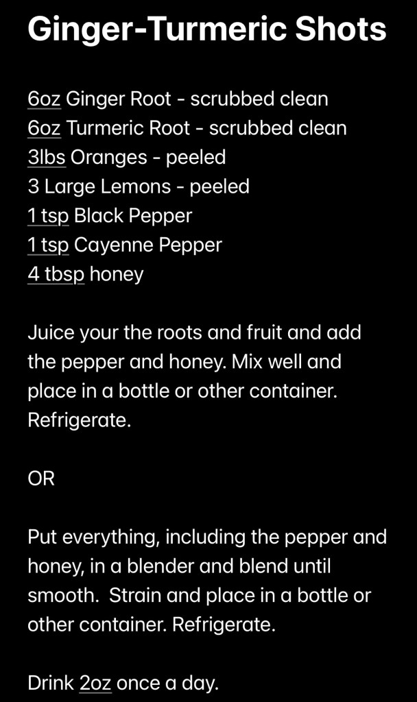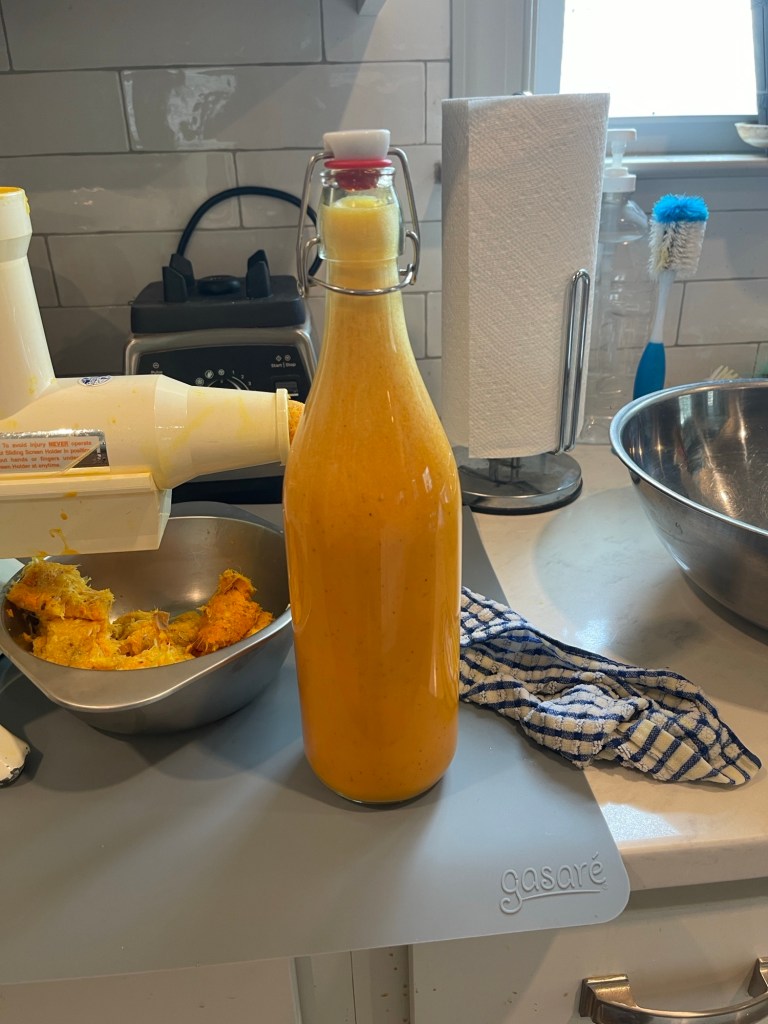 While the podcast was running, I made a batch of my ginger-turmeric juice.