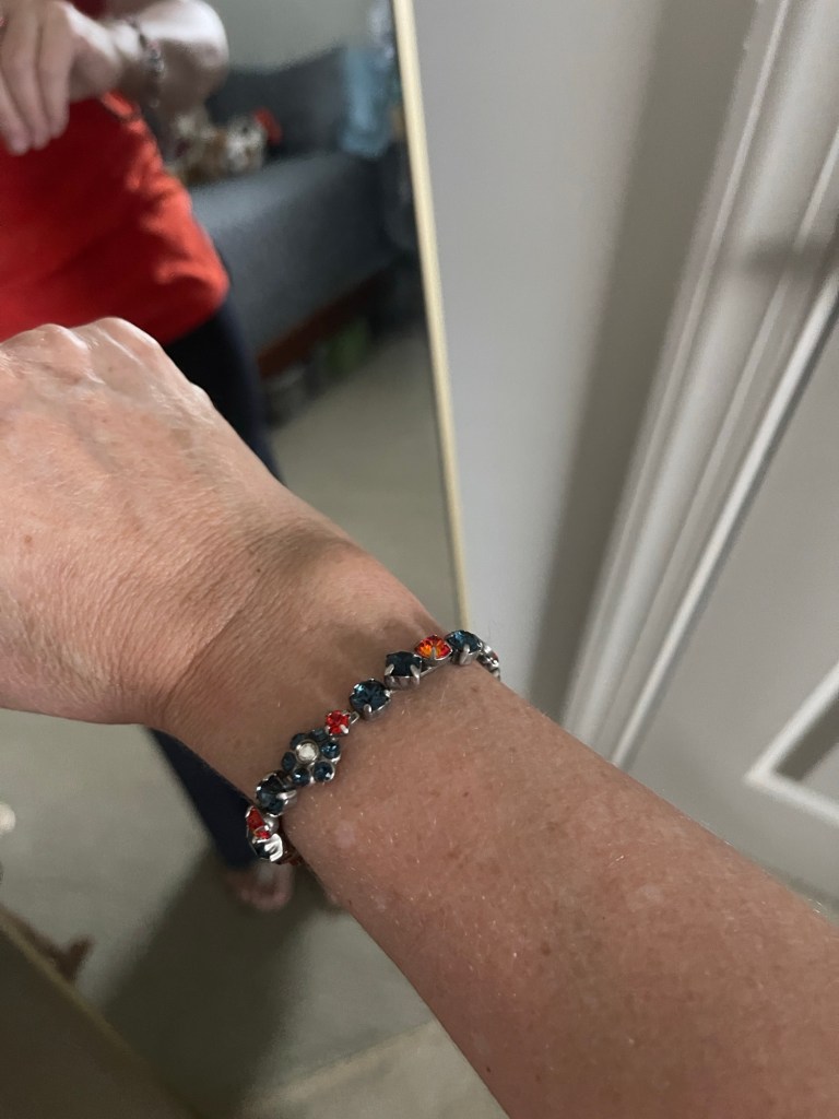 The bracelets on the arm in the photo above are not Sorrelli, but the one in the picture below is.