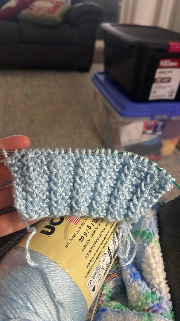 I am trying to pace myself with this knitting project because I don’t want to make my shoulder more sore than it already is. That happened in the spring when I tried to start knitting again. I learned the hard way that repetitive motions aggravate shoulder injuries.