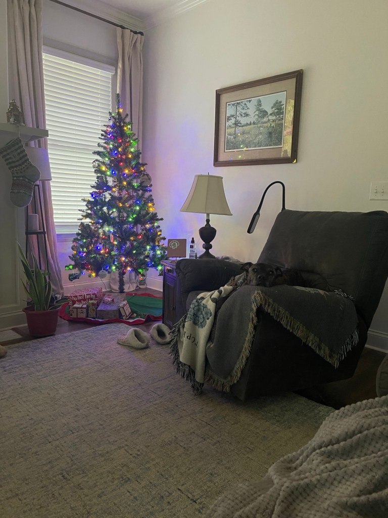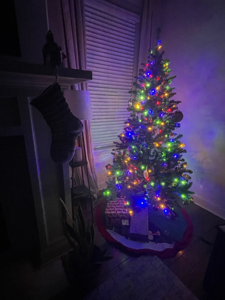 He added a new tree skirt (because he didn’t want to dig through Christmas decoration boxes) the next day.