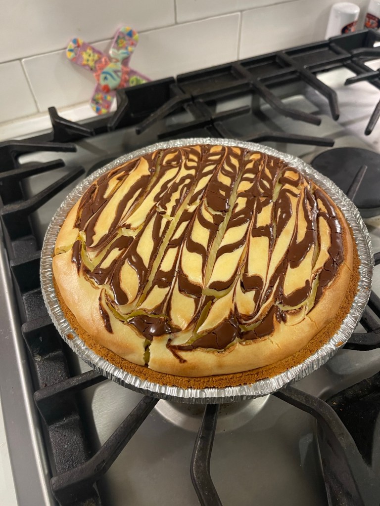 My daughter-in-law got busy preparing a cheesecake – her speciality – after E went to bed.
