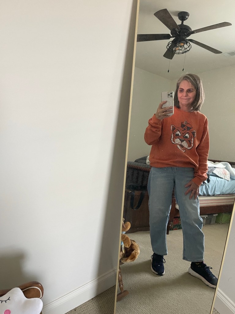 I decided to forgo fashion for comfort given the frigid game-time temperatures that had been in the news all week. I was sporting a snazzy pair of Lululemon leggings under those loose blue jeans. The sneakers were for warmth.
