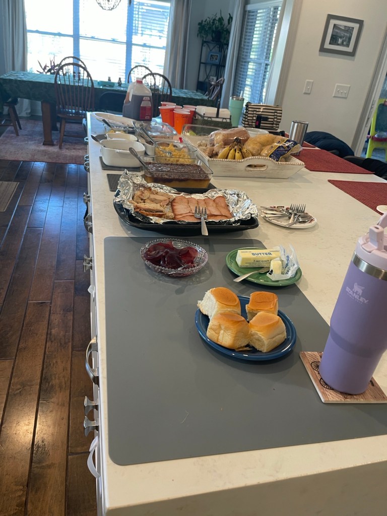 I have shared photos of my kitchen before. It’s my favorite room in my house. My island is huge, which is always perfect for big feasts. Instead of putting the food on the table, as I’ve done in the past, I decided to line everything up on the island to make serving ourselves easier.