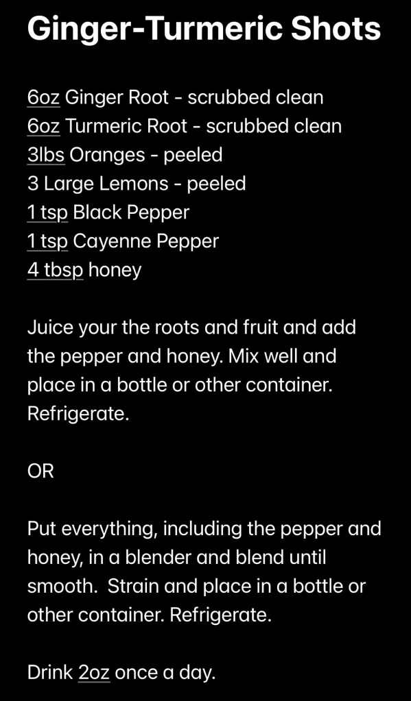 Sunday, we attended church, and then I prepared a batch of my ginger-turmeric juice.