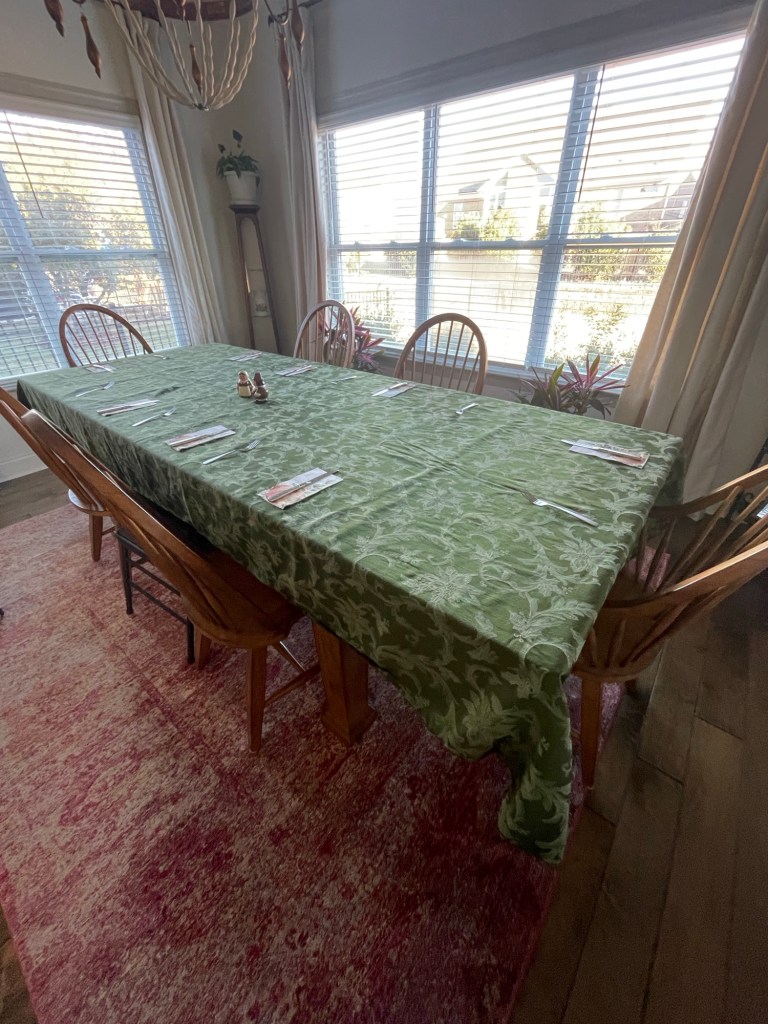 Thanksgiving Day started early. I made sure my table was set, but instead of using my fancy china, I opted for decorative paper plates. With ten people eating, I wanted an easy cleanup.