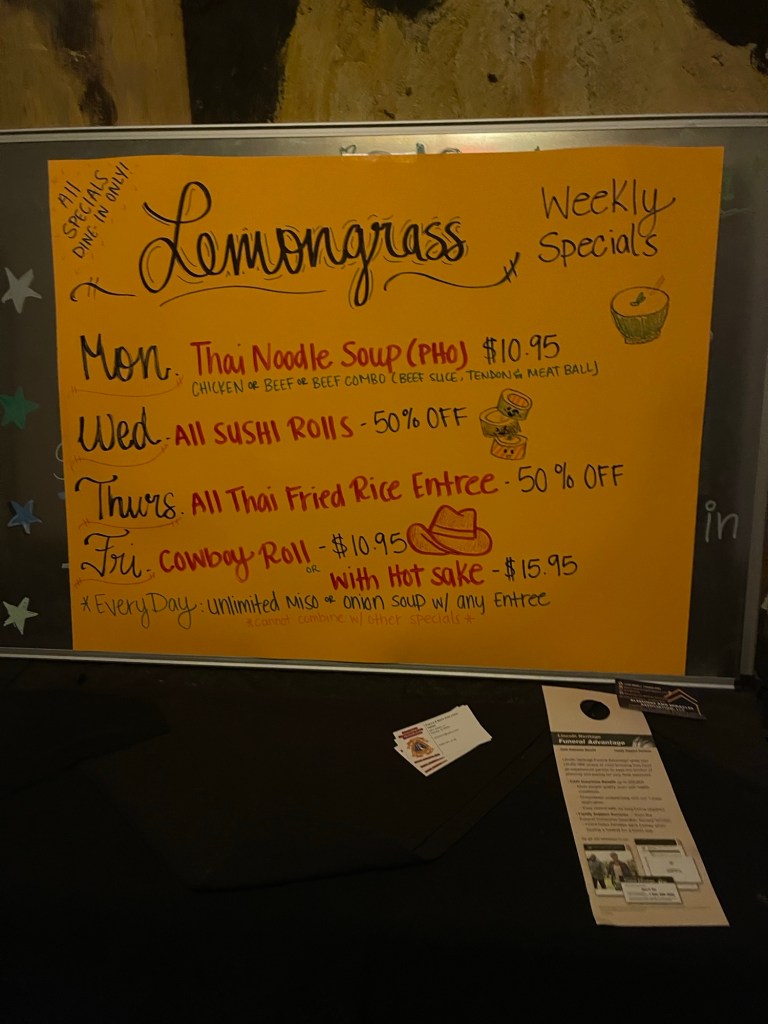 Thursday evening, the Mr. and I decided to try a new-to-us Thai restaurant that a gal at work had told me about. We have a favorite local sushi bar that we frequent once a week, so we were a little nervous. You know how it is when you change things up.