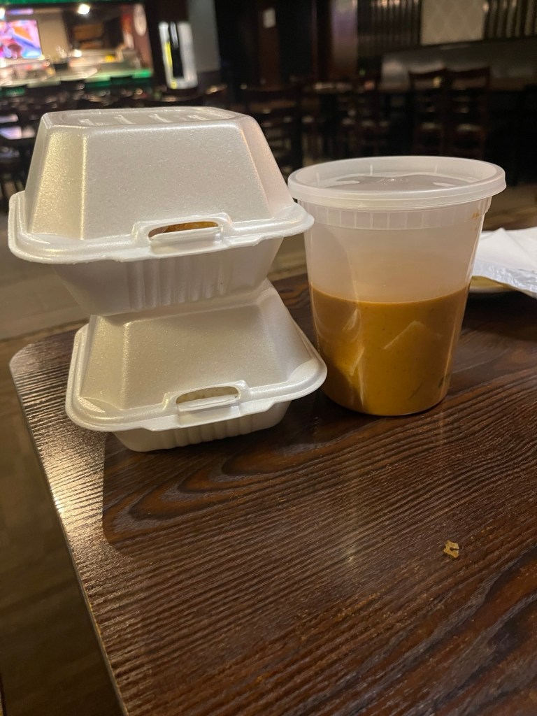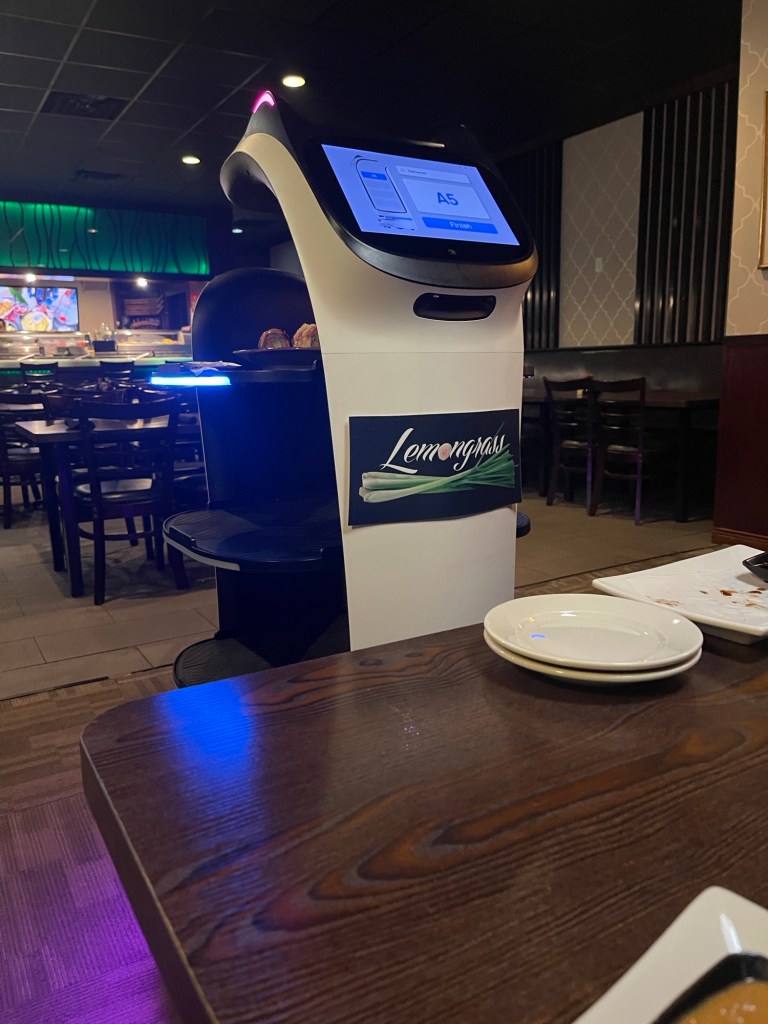 A robot delivered part of our meal. This was my first experience with a robotic waiter. Our server came over and apologized after explaining that she’d been busy and had sent the order over. We didn’t mind one bit.