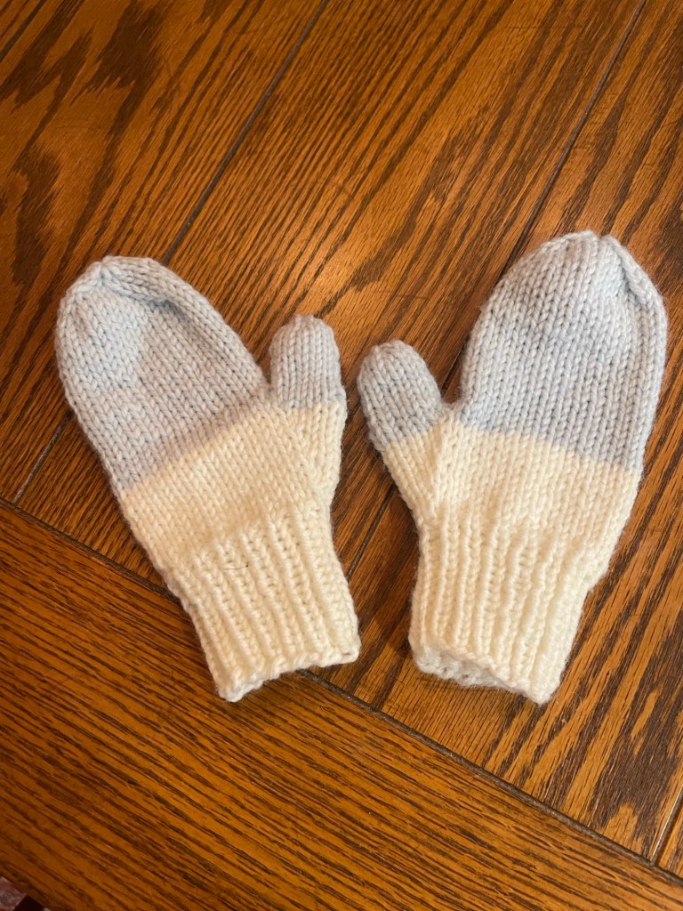 While I watched, I finished knitting the pair of mittens I’d restarted after running out of yarn.