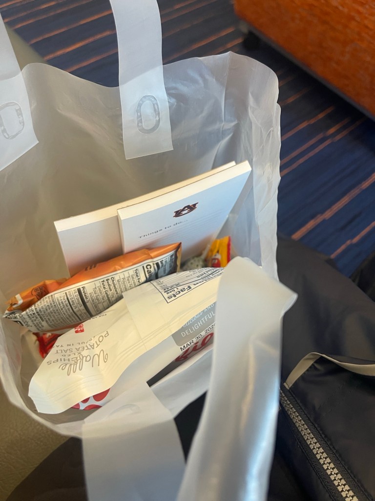 My colleagues and I attended a holiday lunch in another building. They handed each of us a goody bag and a very lovely rain jacket embroidered with the Auburn logo and our department name.