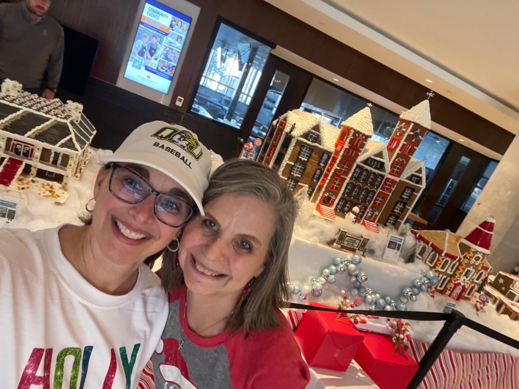 Christmas Eve, my sister picked me up for our annual Christmas Eve sister date. We hit up a couple of stores looking for last-minute gifts for our husbands. We ended our outing by visiting the culinary school’s gingerbread house display.