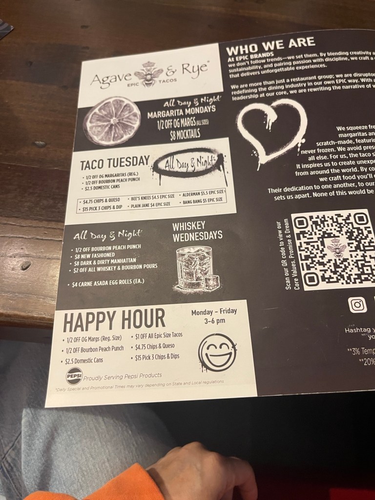 The next day, we went to the mall. Before we started shopping, we ate at Agave & Rye.