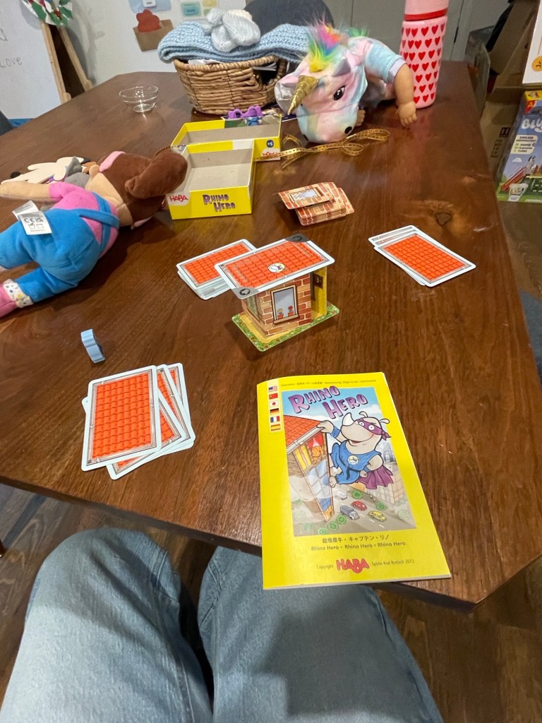 The bulk of our weekend involved lots of play. This card game, which we’d also given E, was a hit once I figured out the rules.
