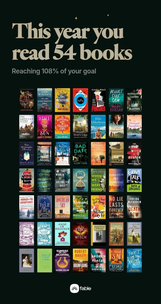 I finished off one more book, bringing my total to 54 for the year, exceeding my annual goal of 50.
