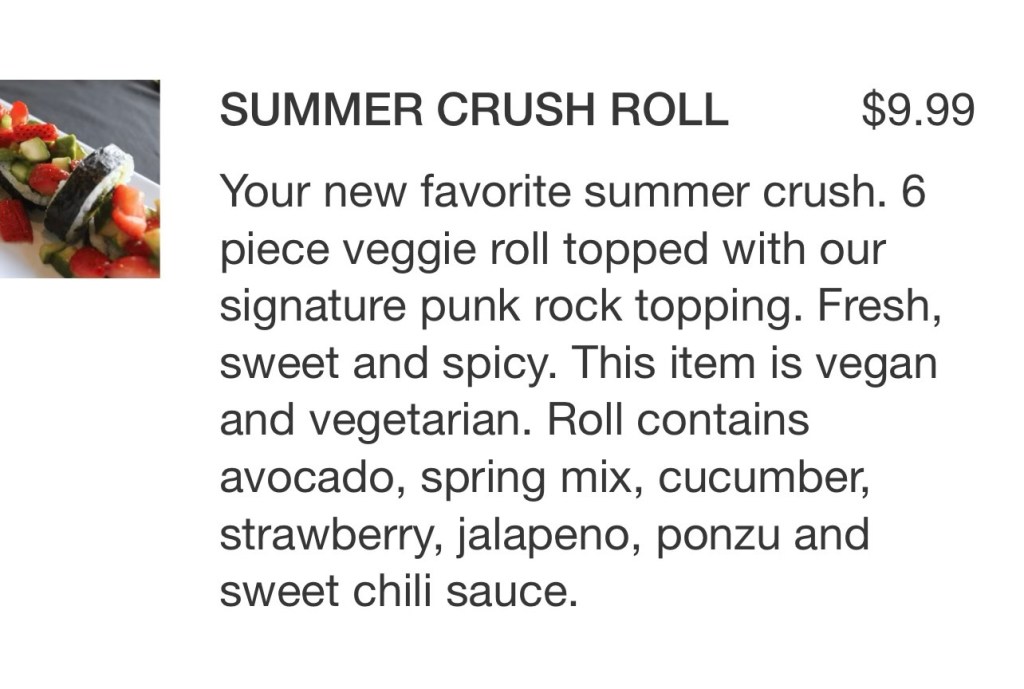 It did not disappoint. The Mr. had looked at the menu online, and he saw this vegan offering: