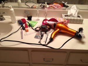 We put stuff everywhere. Her roommate isn’t a soccer player, so she won’t be arriving at the school for another couple of weeks. We took advantage and used her bed to set things on…