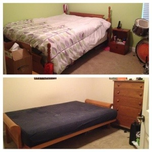 Although her room was a disaster while she was home, she had it all cleaned up by Thursday, departure day…